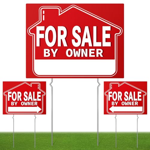 Till salu av ägaren gårdsskylt (3-pack), 45 cm x 35 cm dubbelsidiga gårdsskyltar med metall H-insatser, till salu av ägarskyltar för fastigheter, perfekt för husägare fastigheter riktade pilar