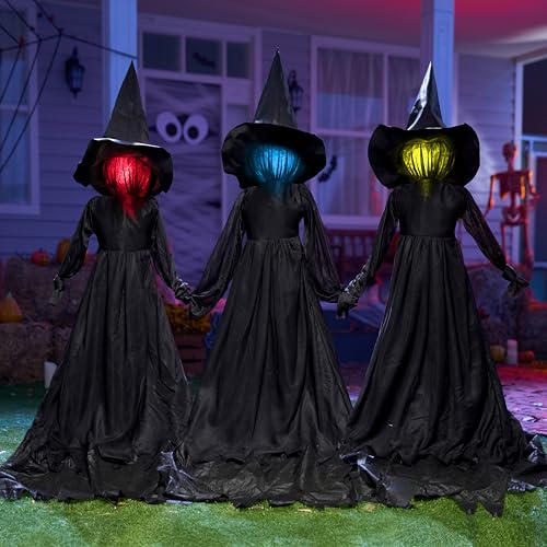 JOYIN 3-pack 122 cm halloween upplyst häxa gårdsinsats, häxa gårdsskylt med läskigt ljud (ljudaktivering) för halloween utomhus, gräsmatta, gård, uteplats dekoration, husdekorationer