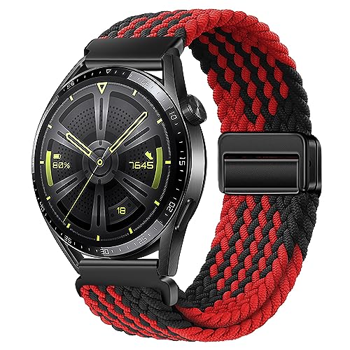 XMUXI Nylonarmband på 22 mm, kompatibelt med Huawei GT4/GT3/GT2 46 mm/Garmin Venu 2/3/Vivoactive 4, sportklockarmband för Samsung Watch 3, 45 mm/Gear S3, kvinnor och män, elastiskt, flätat, svart