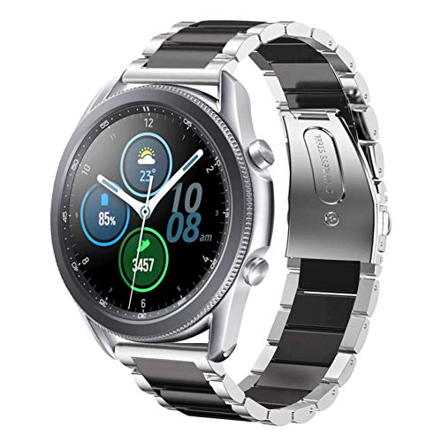 SUNDAREE Kompatibel med Galaxy Watch 3 45 mm, 22 mm, silver, svart, ersättningsarmband i rostfritt stål för Samsung Galaxy Watch 1 46 mm/Gear S3/Garmin Venu 3 2