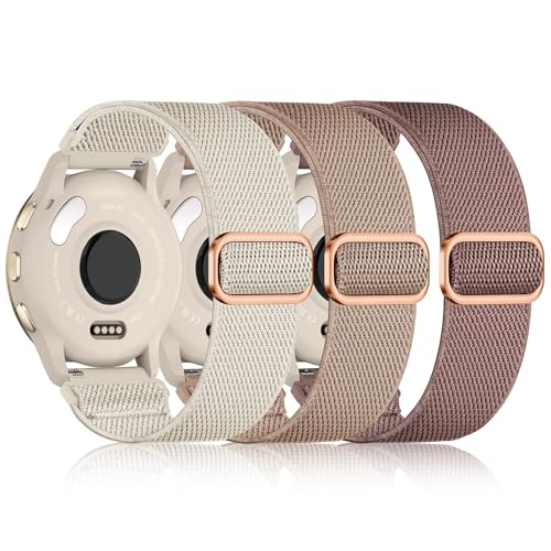 Wizvv 3 stycken armband kompatibla med Garmin Venu 2S/Venu 3S/Vivoactive 4S/Vivomove 3S/Forerunner 255S/265S, elastiskt band för Garmin Venu 2S kvinnor och män, Nylon