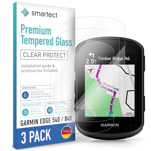 smartect [3 Stycken, Clear] Skärmskydd kompatibel med Garmin Edge 540/540 Solar / 840/840 Solar, HD Screen Protector i Härdat Glas 9H, Bubbelfri Installation, Anti-Fingeravtryck