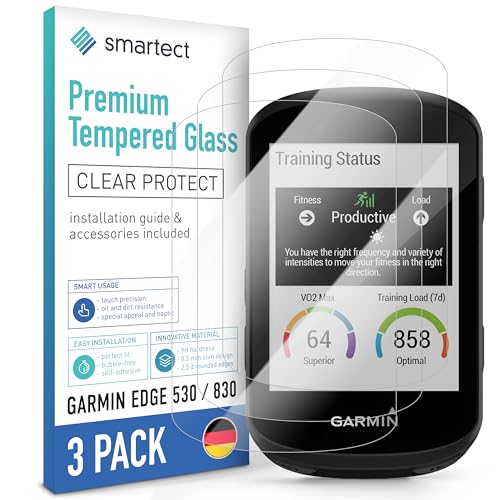 smartect [3 Stycken, Clear] Skärmskydd kompatibel med Garmin Edge 530/830, HD Screen Protector i Härdat Glas 9H, Bubbelfri Installation, Anti-Fingeravtryck