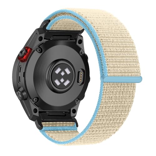 RanBluu QuickFit 22 mm nylonarmband för Garmin Tactix 8 47 mm/Descent G2/Safem8 47 mm/E/Fenix 7, kardborreband, ersättningsband för Garmin Epix 2, Cremefarben