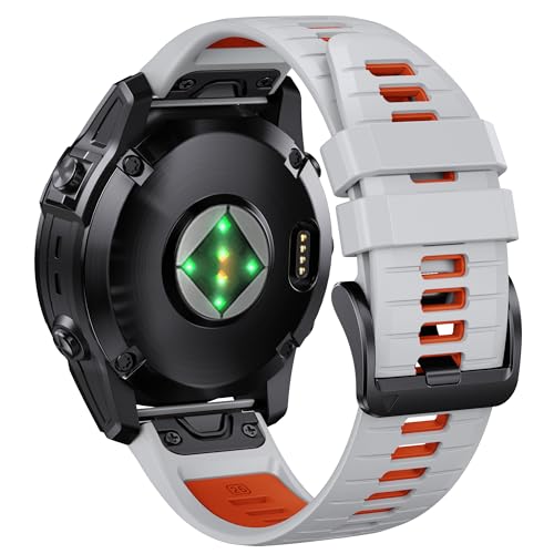 MYSNBKN 22 mm snabbpassningsrem för Garmin Fenix 7 Pro/Fenix 7/Fenix 6/Fenix 5/EPIX 2, mjukt silikonersättningsarmband för Garmin Forerunner 935/945/955/754/Approach S60/S62, Kolgrå orange, 22MM