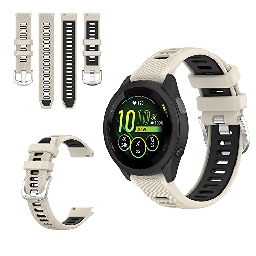 QINOUK Klockarmband för Garmin Forerunner 265s, [Andningsbar] Sportband i Silikon, Tvåfärgad Rem, Silikon Ersättningsrem för Garmin Forerunner 265s-Elfenbensvit