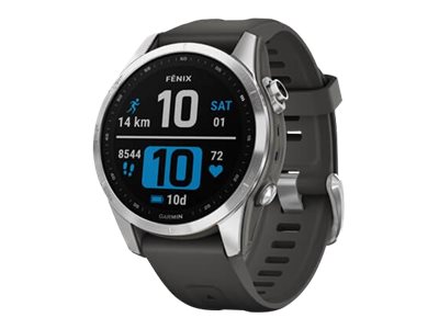 Garmin Fenix 7S Pro - 42 mm - silver - sportklocka med band - silikon - grafit - handledsstorlek: 108-182 mm - display 1.2" - 16 GB - Bluetooth, Wi-F