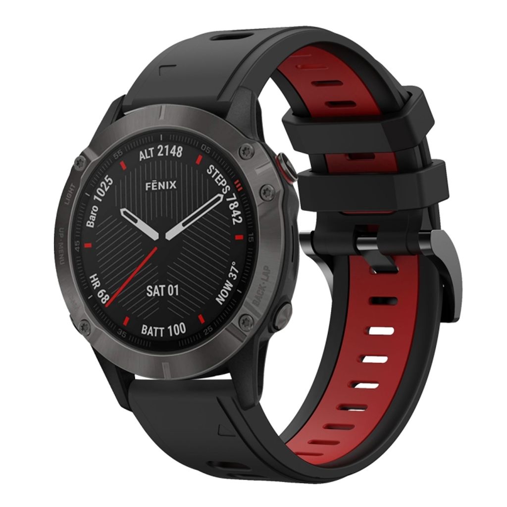 Garmin Fenix 6 Sapphire GPS Tvåfärgat Klockarmband i Silikon - Svart / Röd