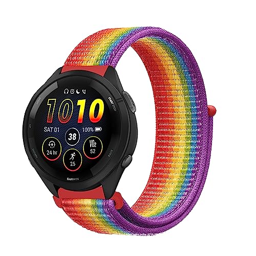 Niboow 22 mm armband för Garmin Forerunner 265/255/255 Music, Vivoactive 4, Venu 2, Active – regnbåge nylon