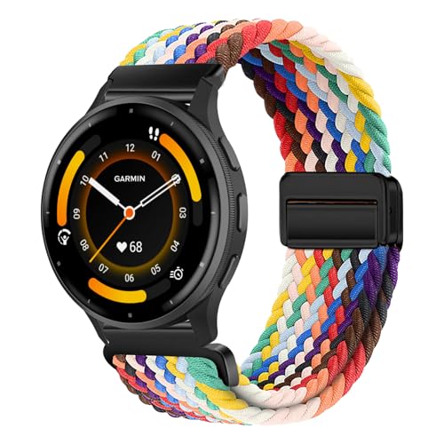 KeeFos 22 mm armband, kompatibelt med Garmin Forerunner 570 47 mm/Forerunner 265/255/Venu 3 45 mm/Venu 2/Vivoactive 4/Active, nylonarmband med magnet, ersättningsband – regnbåge