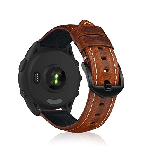 KeeFos 22 mm armband kompatibelt med Garmin Venu 4 45 mm/Venu 3 45 mm/2/Forerunner 570 47 mm/265/255/Vivoactive 4/Active, mjukt läder, klockarmband, kvinnor män ersättningsarmband – ljusbrunt