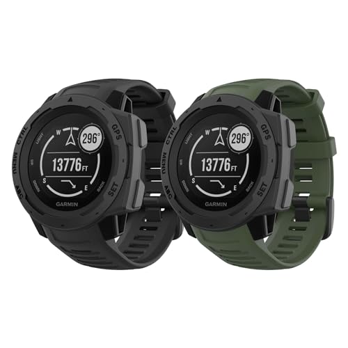 MoKo 2Pack Strap Compatible with Garmin Instinct/Instinct Solar/Tactical/Instinct 2 GPS Smartwatch, 22mm Soft Silicone Sport Replacement Watch Band Wristband, Black/Army Green