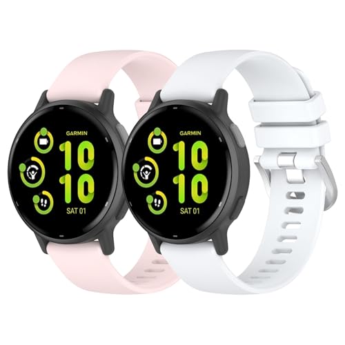 Garmcool 20 mm armband kompatibelt med Garmin Vivoactive 6/5/3 armband, herr och dam silikon ersättningsremmar för Garmin VivoMove Trend/Sport/Style (utan klocka), Vit/rosa, 5,5"-8,7", Casual