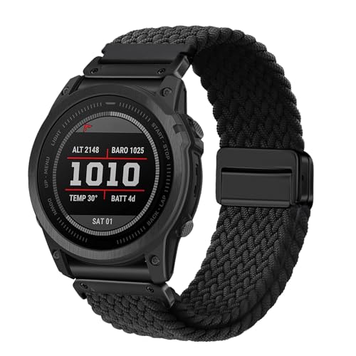 YOOSIDE Quick Fit Armband på 22 mm, flätat, elastiskt, med magnetlås, för Garmin Fenix 7/6/5/epix Pro 47 mm, band av nylon, stretchigt klockarmband för Forerunner 955, Quick Fit 22, Nylon, Ingen