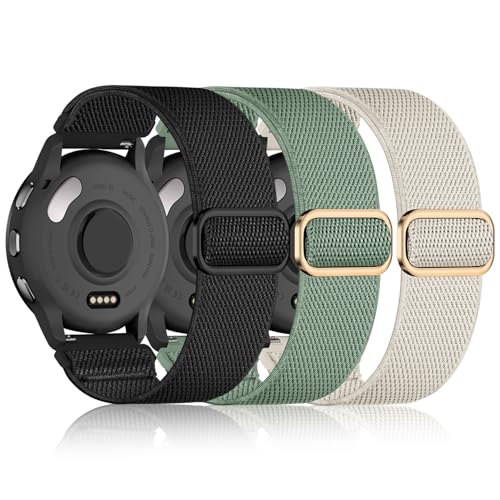 Wizvv 3 stycken armband kompatibla med Garmin Venu 2S/Venu 3S/Vivoactive 4S/Vivomove 3S/Forerunner 255S/265S, elastiskt band för Garmin Venu 2S kvinnor och män, Nylon