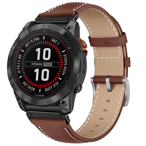 TOPsic Fenix armband 7 x läder, 26 mm armband för Garmin Fenix 6X, Fenix 6X Pro, Fenix 5X, Fenix 5X Plus, Fenix 7X, Fenix 3, Fenix 3 HR, Garmin Enduro, Quatix 3, D2 Delta PX