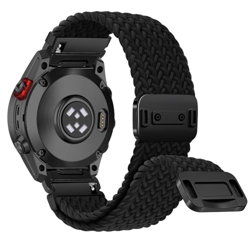 RanBluu QuickFit 26 mm nylonarmband kompatibelt med Garmin fēnix 8 51 mm/Enduro 3/Fenix 7X/7X Pro/Fenix 6X/6X Pro/5X, magnetspänne, ersättningsband för Garmin Descent Mk3i, svart