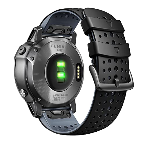 NotoCity 26 mm ersättningsarmband för Garmin Fenix 6X/6X Pro-armband, Quick-fit armband kompatibelt med Garmin Fenix 5X/5X Plus/Fenix 3/3HR/MK1 silikon klockarmband, svart-grått
