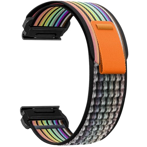 ZoRoll 26 mm QuickFit armband för Garmin Fenix 8 51 mm/Fenix 7X Pro/7X/6X/5X/5X Plus, mjukt elastiskt nylonarmband för Garmin Enduro 3/Enduro/Tacx 7 AMOLED/Epix Pro 51 mm - regnbåge svart