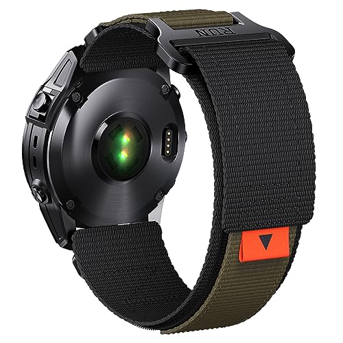 NotoCity Klockarmband i nylon, kompatibel med Garmin Fenix 6x pro, 26 mm Quickfit klockarmband för Garmin Fenix 7X/6X/5X/3/3HR, Descent MK1/MK 2i/MK 2 med ersättningsvävt slingband (svart/armégrön)