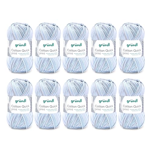 Gründl Cotton Quick Print stickgarn/virkgarn (färgglatt garn tillverkat av 100% bomull, OEKO-TEX certifierad, 50 g/125 m, nåltjocklek: 3 – 4, 10 x 50 g), mintblå-vit-grå-mix färg