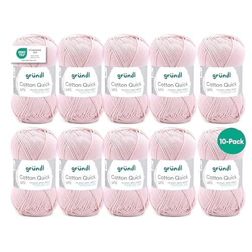 Gründl Cotton Quick Uni stickgarn/virkgarn, 10 nystan om 50 g (färgglatt garn tillverkat av 100% bomull, OEKO-TEX certifierad, 50 g/125 m, nåltjocklek: 3 – 4, 10 x 50 g), rosa, 29 x 12 x 7 cm