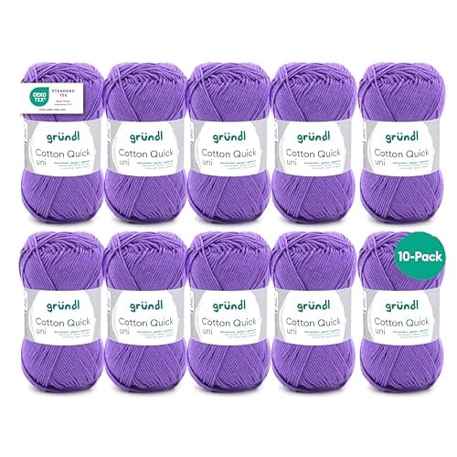 Gründl Cotton Quick Uni stickgarn/virkgarn, 10 nystan om 50 g (färgglatt garn tillverkat av 100% bomull, OEKO-TEX certifierad, 50 g/125 m, nåltjocklek: 3 – 4, 10 x 50 g), lila, 29 x 12 x 7 cm