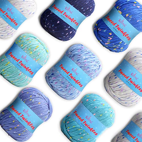 Tweed Twinkles supermjuk texturerad stickning virkat garn, 8 bollar (632 meter/400 gram), DK Light Worsted #3 (blå pack)