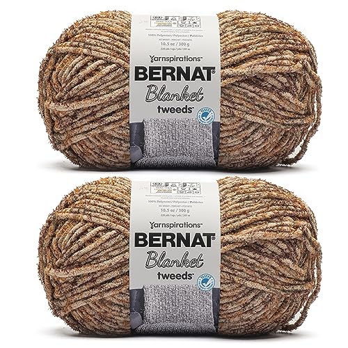 Bernat filt tweeds sandy tweed garn – 2-pack med 300 g – polyester – #6 super skrymmande – 220 meter – stickning, virkning, hantverk och amigurumi, tjockt Chenille-garn