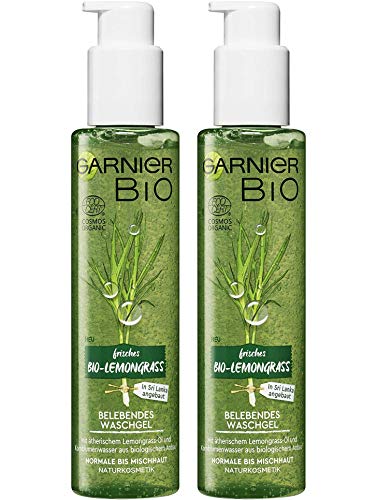 Garnier Bio Citrongrass belöande tvättgel, naturkosmetika, ansiktsvård med glycerin, eteriska oljor (2 x 150 ml)