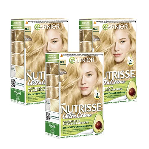 Garnier Nutrisse permanent vårdande hårfärg med närande fruktoljor, färg med 8 veckors grepp, ultra-krämnyans, 093 ljusguldblond (3 set)