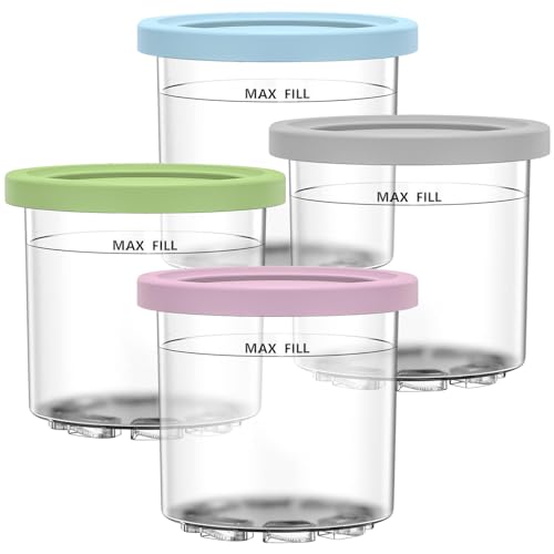 Forhome Creami gasbehållare 4 st glassbehållare med lock för ninja glassmaskiner NC301 NC300 NC299AMZ CN305A CN301CO serie BPA-fri och diskmaskin