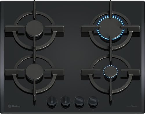 Balay Gasplatta, 60 cm bred, 4 matlagningszoner, löstagbara kontroller, flamkontroll, självständig, gasstopp, svart, 3ETG664RB