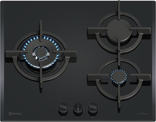 Balay Gasplatta, 60 cm bred, 3 matlagningszoner, löstagbara kontroller, flamkontroll, självständig, gasstopp, svart, 3ETG663RB