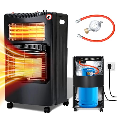 Cecaylie Gasugn 4,2 KW gasvärmare och 1 260 W elektrisk gasvärme, vikbar gasspis 306 g/h, gasförbrukning gasvärmevolym 20–60 m³, koppla in och börja använda