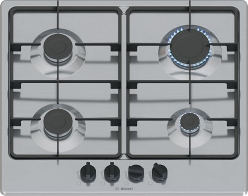 Bosch PGP6B5K60, gasspis, bygelknoppar: ergonomisk kontroll, 4 brännare, stål, Amazon-exklusiv version, 60 cm, serie 4 – NEW, rostfritt