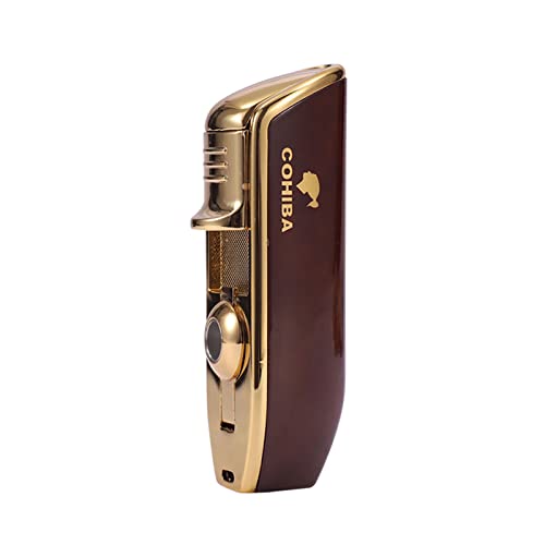 Justerbara Tändare Med 3 Strålar, Påfyllningsbar Gaständare Med Cigarrskärare, Vindtät Ljuständare För Rökning Matlagning Svetsgrill (utan Butan),Brown