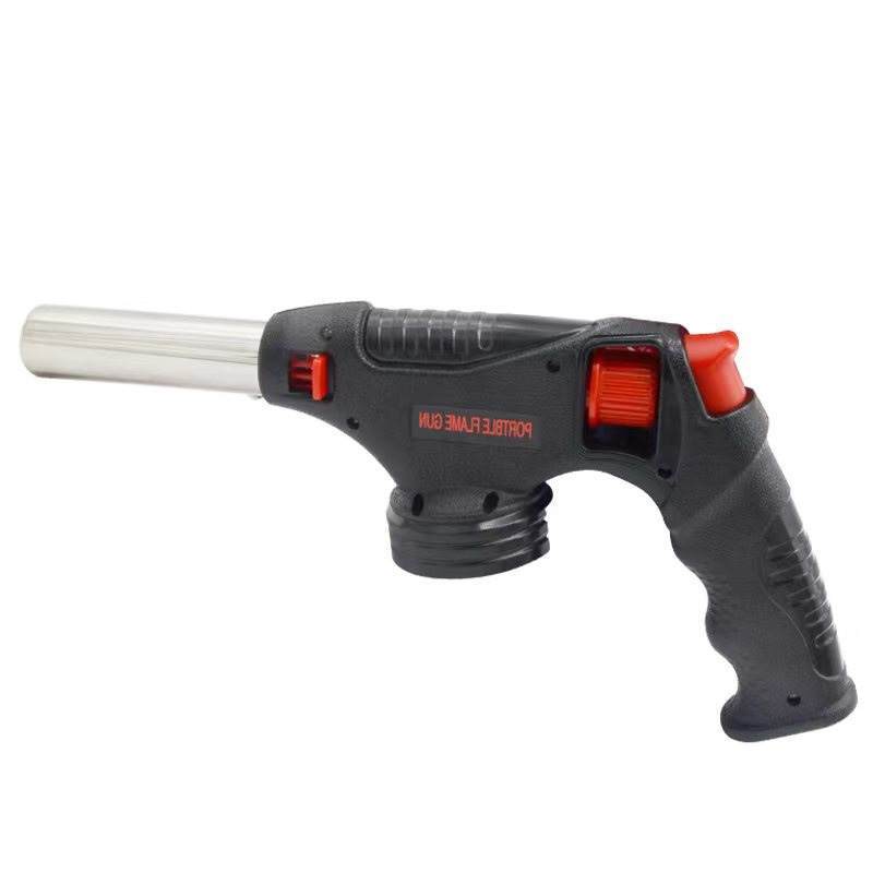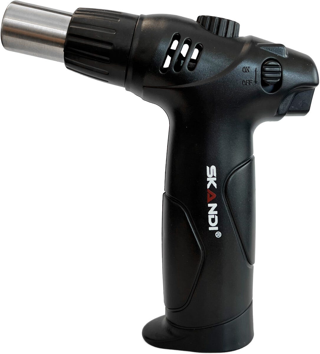 flintronic blåslampa, kökslampa, påfyllningsbar, med butangas, gaständare med säkerhetslås, justerbar flamma med 2 borstar för matlagning, grillning, bakverk, lödning (butangas ingår inte) svart