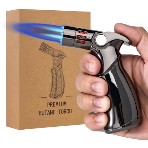 Yeuligo gaständare, 6.0in Jet Torch Butan tändare med synligt fönster, Vindtät tändare Justerbar Jet Flame för BBQ, Spis, Ljus, Kök spis, Spisar, Män Presenter, Svart (Säljs utan gas)