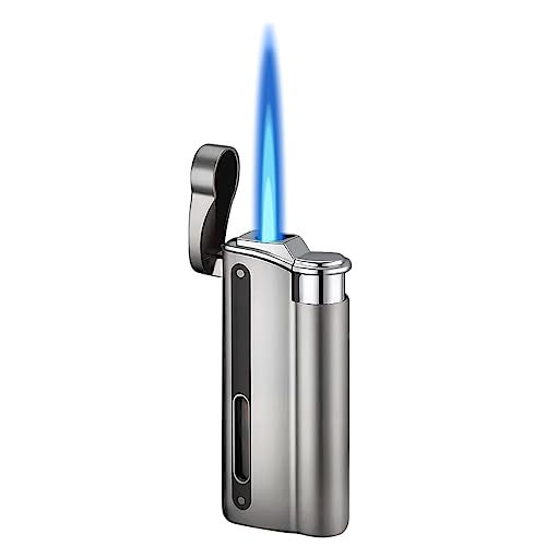 Nizirioo Stormtändare Jetflamme gas påfyllningsbar stormtändare: jettändare med synligt fönster, gaständare stormtändare vindtät tändare för öppen spis, grill, ugn (silvergrå, säljs utan gas)