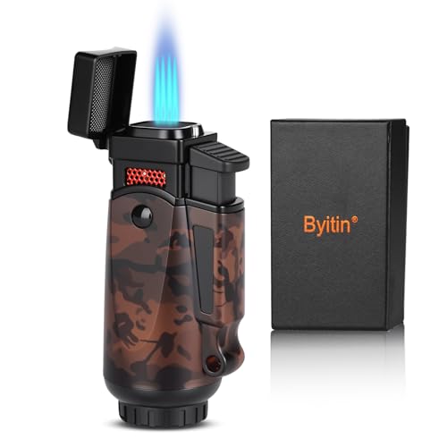 Byitin Stormtålig Jet Tändare 4-flamig - Påfyllningsbar med Butangas, Stor Synlig Gastank & Justerbart Låga, Present Till Män (Utan Gas)