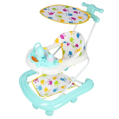 Sun Baby Gåstol för barn Baby Walker från 6 till 12 månader, tryckfunktion, 3-stegs höjdjustering, silikonhjul, ljud, ljus (Blå)