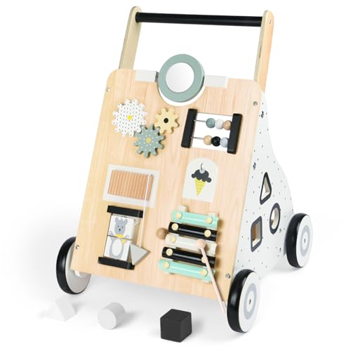 Aolso gåstol i trä, 2-i-1 aktivitetsgåstol, Montessori leksak multifunktion, träleksak baby, verktygsbänk för barn av trä, 12+ månader