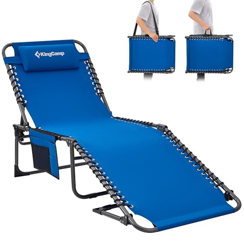 Kingcamp Solstol Med 5-Stegs Justerbart Ryggstöd för Trädgårdsfåtölj Bärbar Solstol för Strand, Terrass, Pool, Camping, Gästsäng, Inomhusbruk