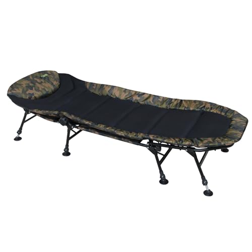 Fiskebädd XL till 150 kg Fort Knox karpbädd X-Pro Camo fiskebåge, sängstol, trädgårdsstol, 8-ben, gästsäng, camping