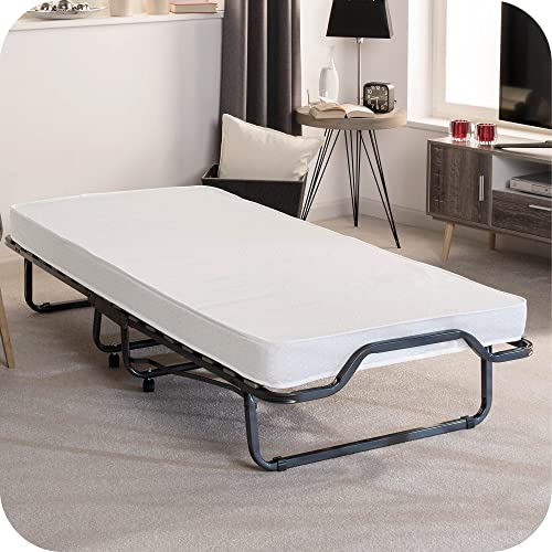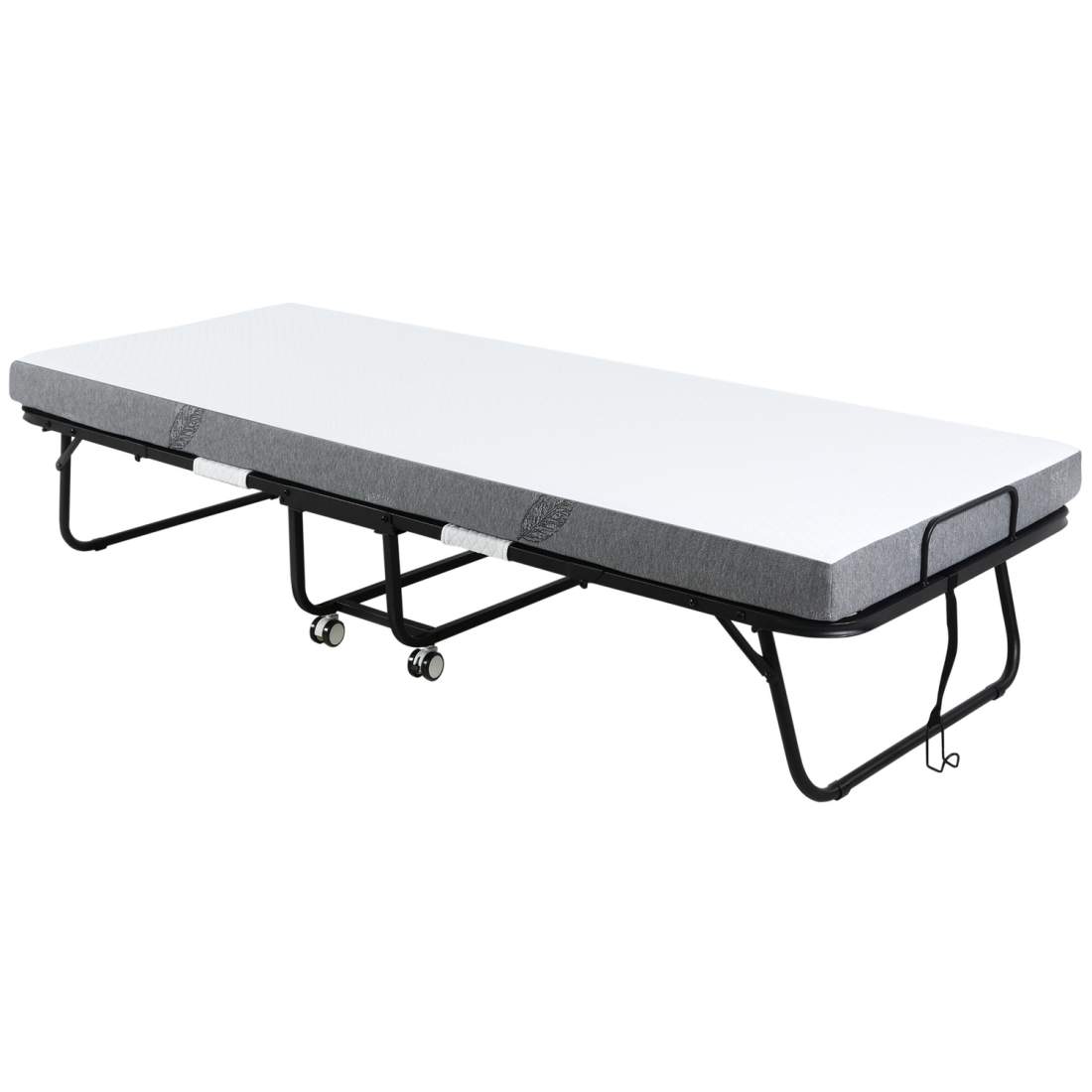 Hopfällbar gästsäng med madrass, stålram, hjul