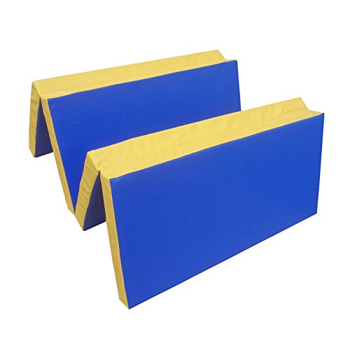 NiroSport gymnastik matta 200 x 80 x 8 cm gul/blå vikbar mjuk golvmatta fitnessmatta sportmatta golvmatta skyddsmatta träningsmatta vattentät hopfällbar gästsäng