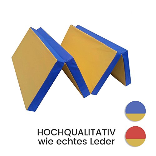 NiroSport gymnastik matta 200 x 100 x 8 cm gul/blå vikbar mjuk golvmatta fitnessmatta sportmatta golvmatta skyddsmatta träningsmatta vattentät hopfällbar gästsäng