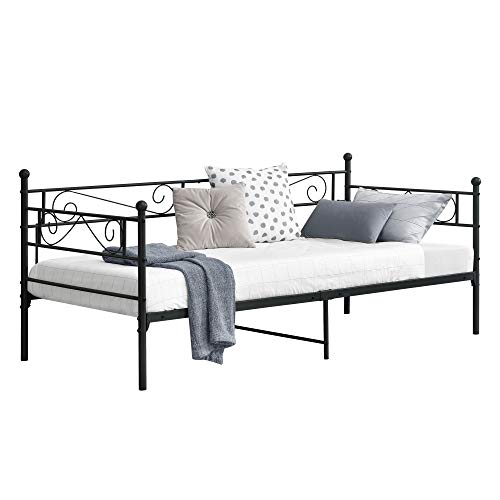 [en.casa] Metallsäng Kerava 90 x 200 cm, dagsäng med huvud- och fotdel, bäddsoffa, våningssäng, ungdomssäng, gästsäng, svart