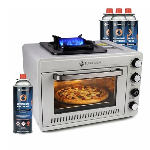 Eurocatch bärbar gasugn med 227 g gaspatroner – Campingugn 25,2 liter – 2,1 kW – Elektronisk tändning – För utomhus- och hemmabruk – Inkl. 4 gaspatroner